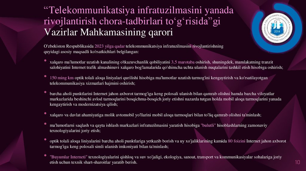 “Telekommunikatsiya infratuzilmasini yanadarivojlantirish chora-tadbirlari to‘g‘risida”gi