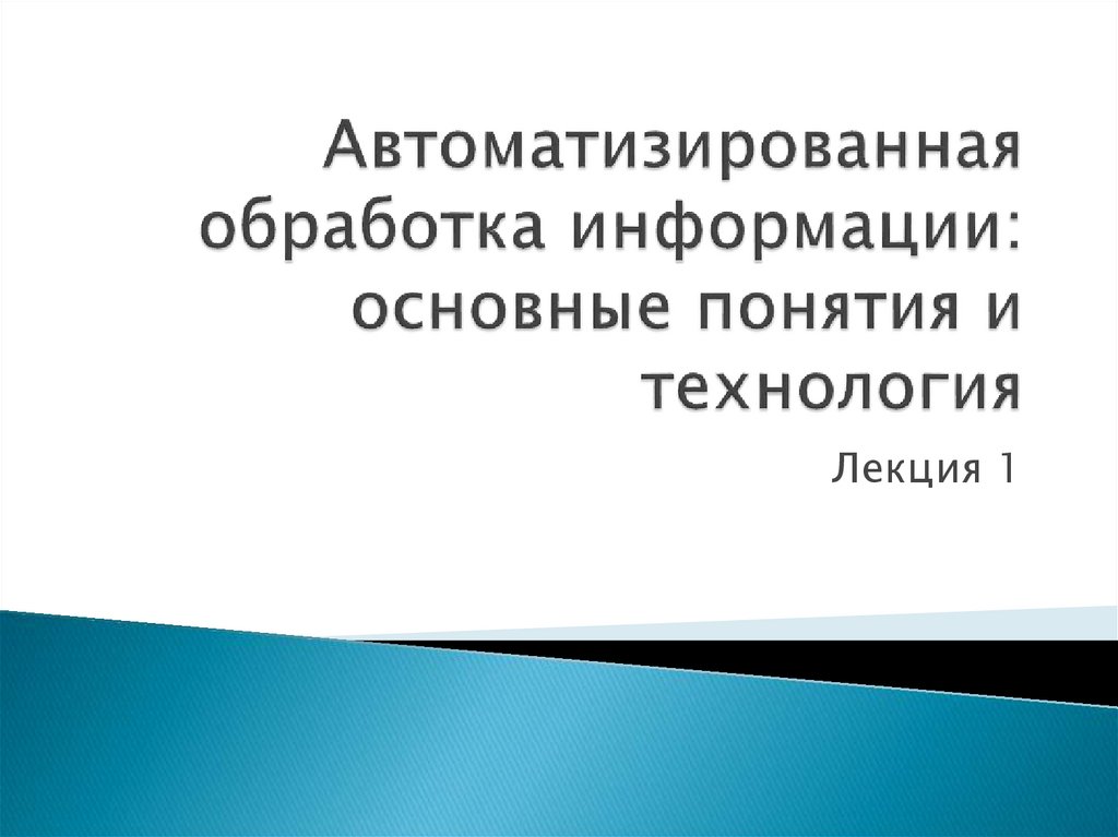 Автоматизированная обработка информации. Основные понятия и технология (лекция 1)