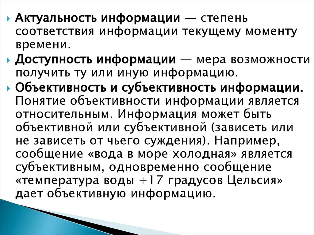 Актуальность информации — степеньсоответствия информации текущему моменту