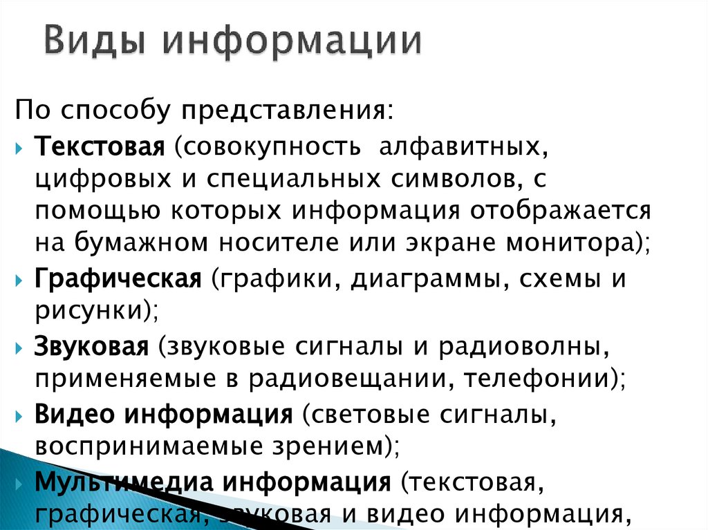 Информация — сведения об объектах иявлениях окружающей среды, которые