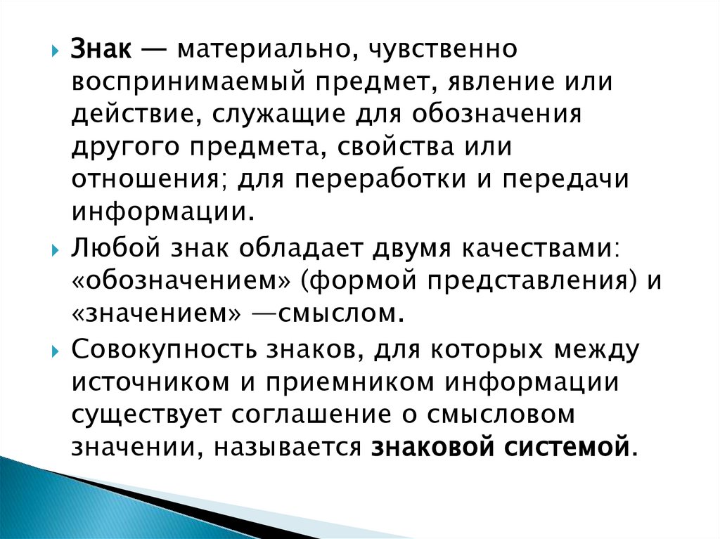 Знак — материально, чувственновоспринимаемый предмет, явление или