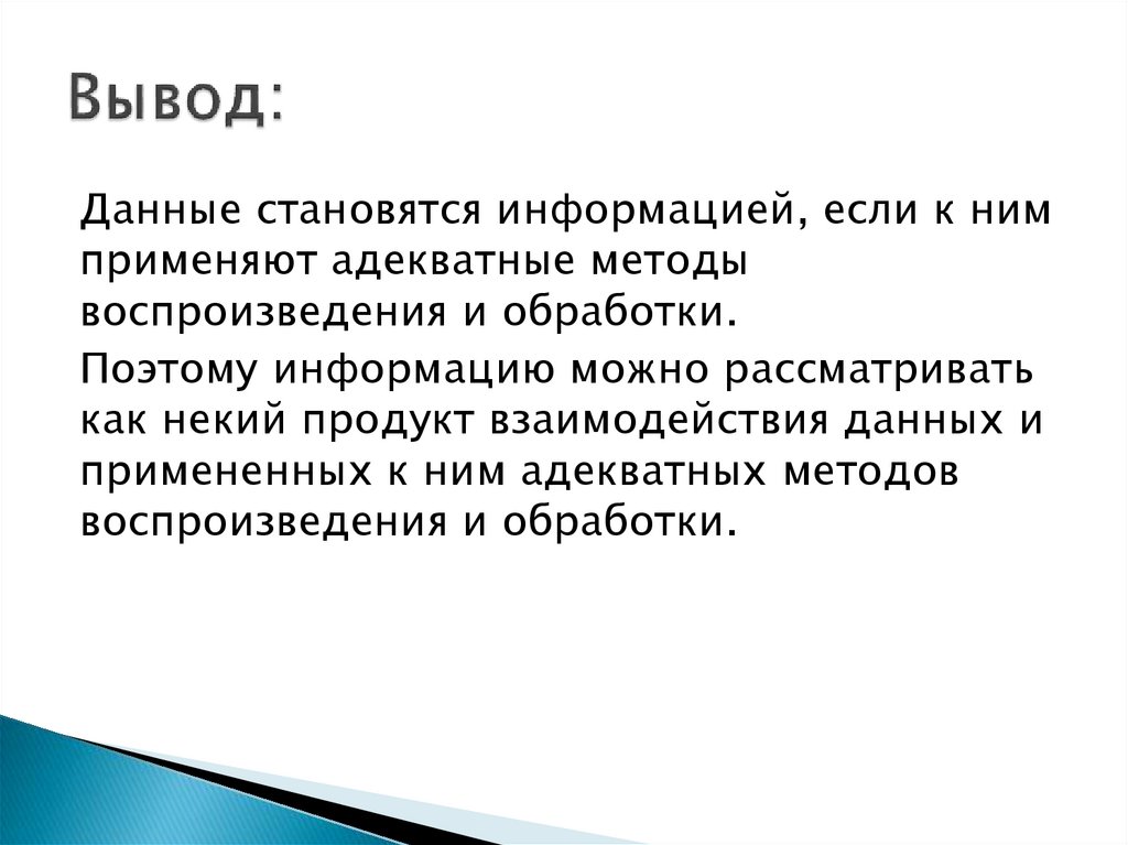 Данные становятся информацией, если к нимприменяют адекватные методы