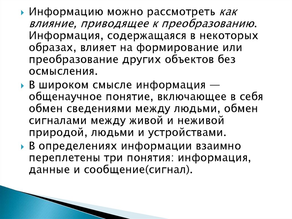 Информацию можно рассмотреть каквлияние, приводящее к преобразованию.