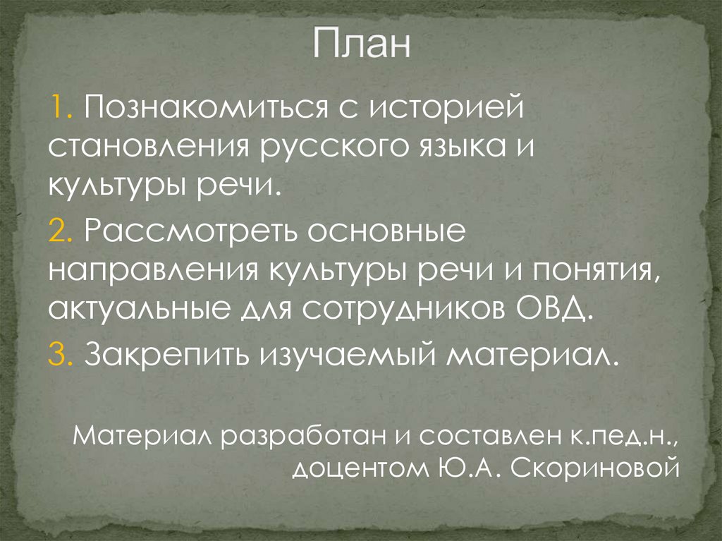 Культура речи сотрудника органов внутренних дел Российской Федерации. Лекция 1