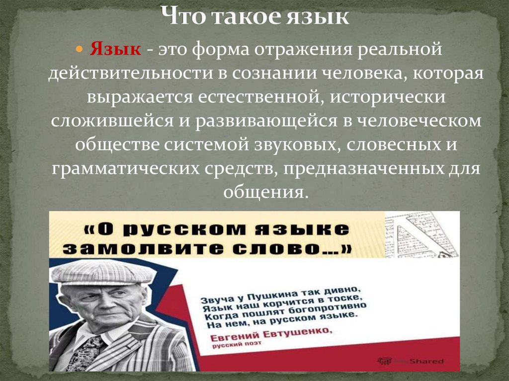 Язык - это форма отражения реальнойдействительности в сознании человека, которая