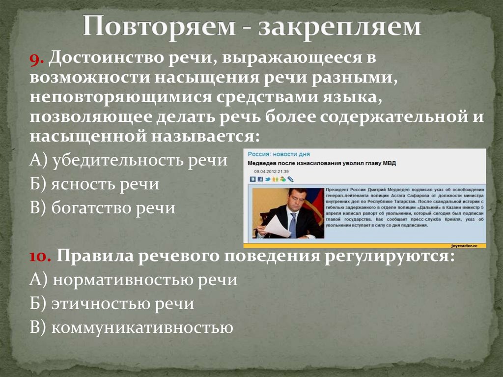 9. Достоинство речи, выражающееся ввозможности насыщения речи разными,