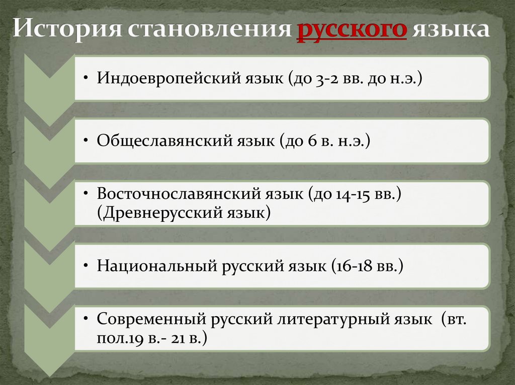 • Индоевропейский язык (до 3-2 вв. до н.э.)• Общеславянский язык (до 6 в. н.э.)