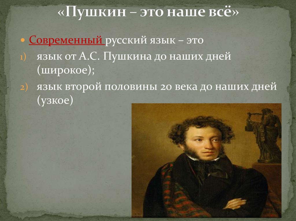 Современный русский язык – этоязык от А.С. Пушкина до наших дней