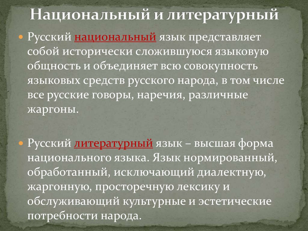 Русский национальный язык представляетсобой исторически сложившуюся языковую