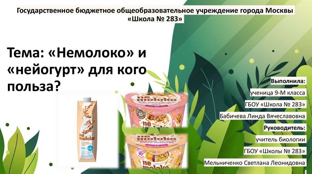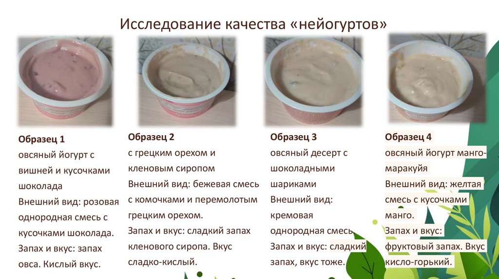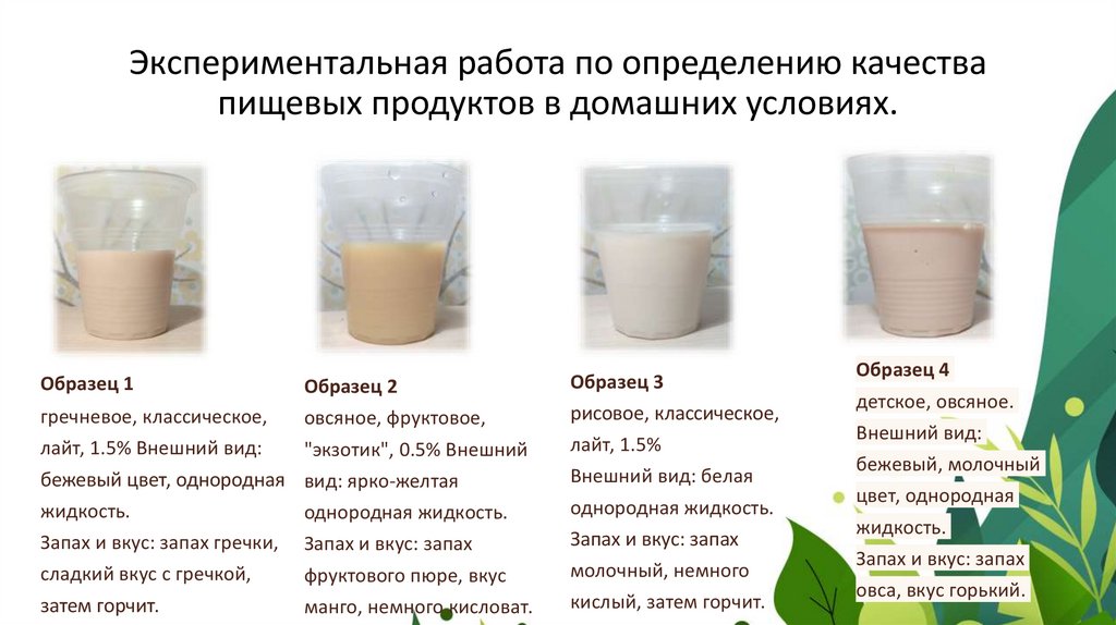 Цель работы – исследовать качество растительной продукции «Немолоко» и «Нейогурт»,