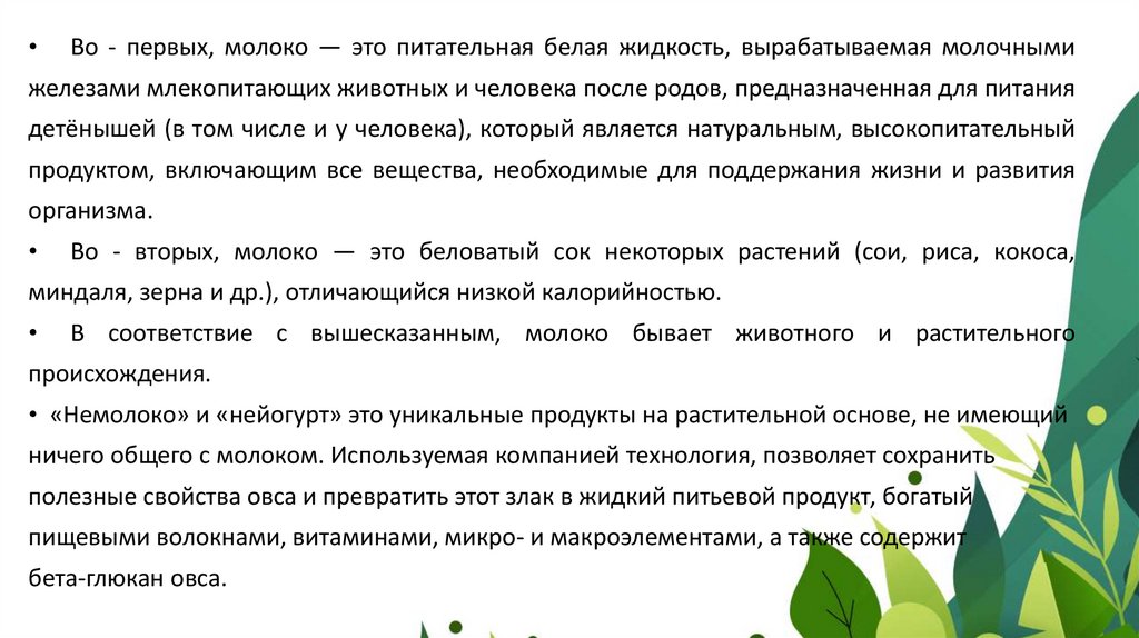 • «Немолоко» и «нейогурт» это уникальные продукты на растительной основе, не имеющий