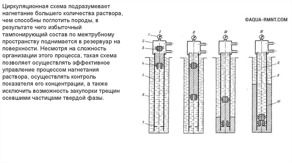 Циркуляционная схема подразумеваетнагнетание большего количества раствора,