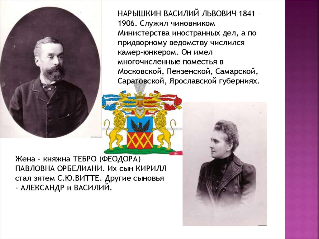 НАРЫШКИН ВАСИЛИЙ ЛЬВОВИЧ 1841 1906. Служил чиновникомМинистерства иностранных дел, а по