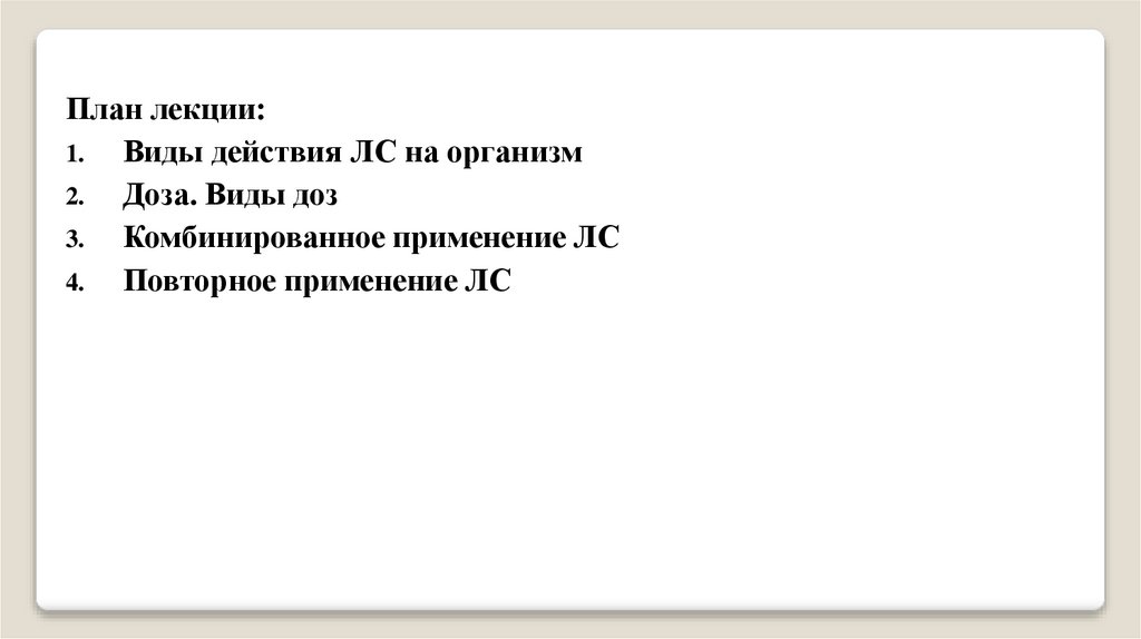 Виды действия ЛС на организм