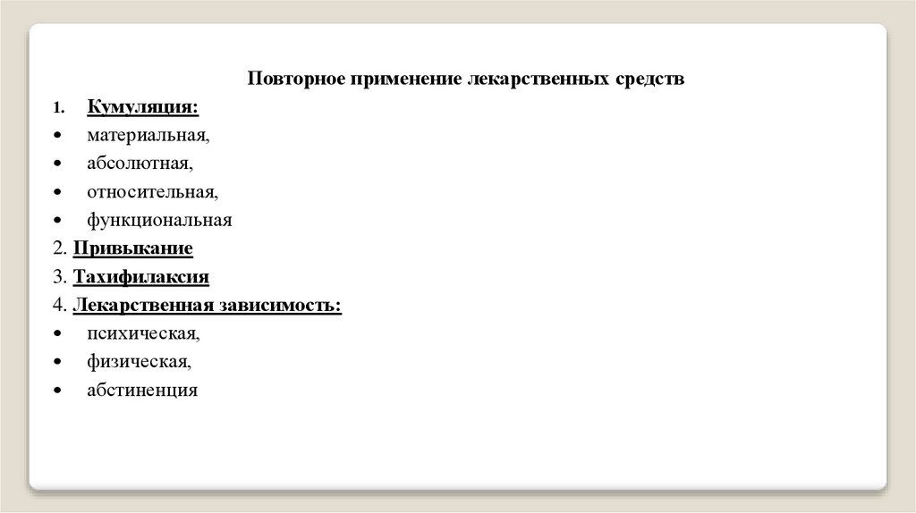 Повторное применение лекарственных средствКумуляция: