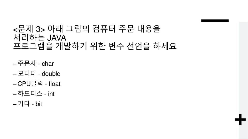 <문제 3> 아래 그림의 컴퓨터 주문 내용을처리하는 JAVA