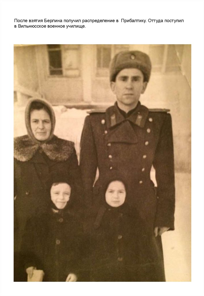 После взятия Берлина получил распределение в Прибалтику. Оттуда поступилв Вильнюсское военное училище.