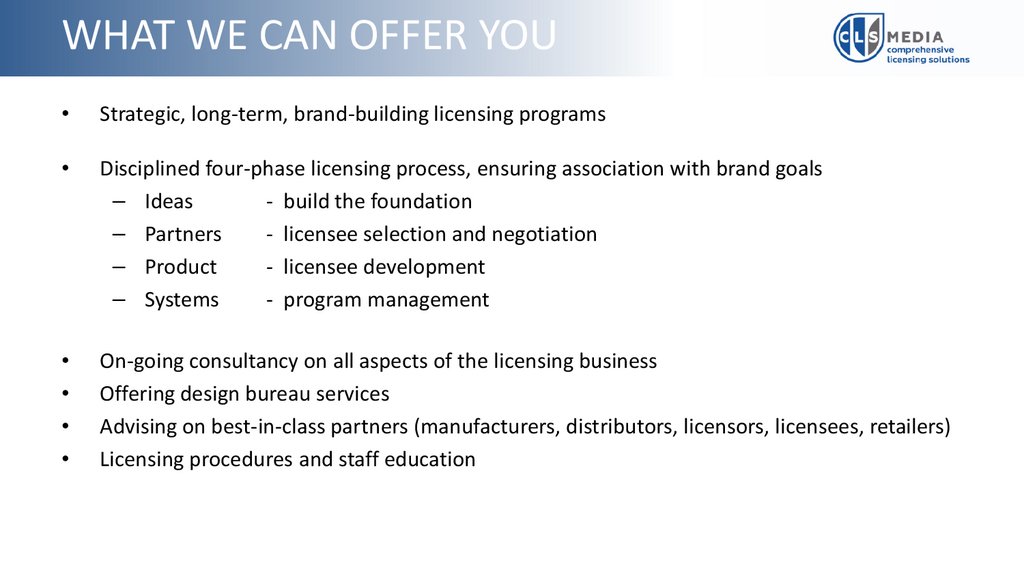 WHAT WE CAN OFFER YOUStrategic, long-term, brand-building licensing programs