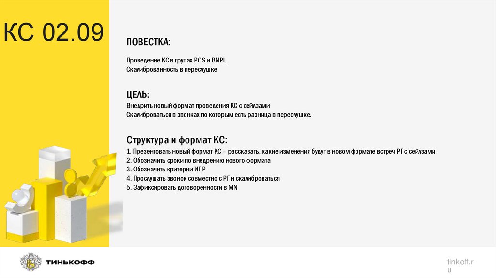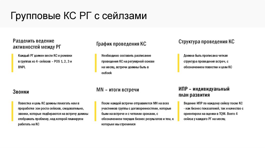 1. Презентовать новый формат КС – рассказать, какие изменения будут в новом формате встреч РГ с сейлзами