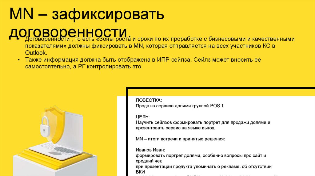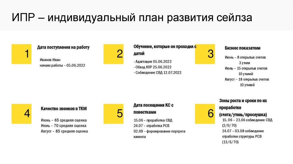 • Договоренности , то есть «Зоны роста и сроки по их проработке с бизнесовыми и качественными