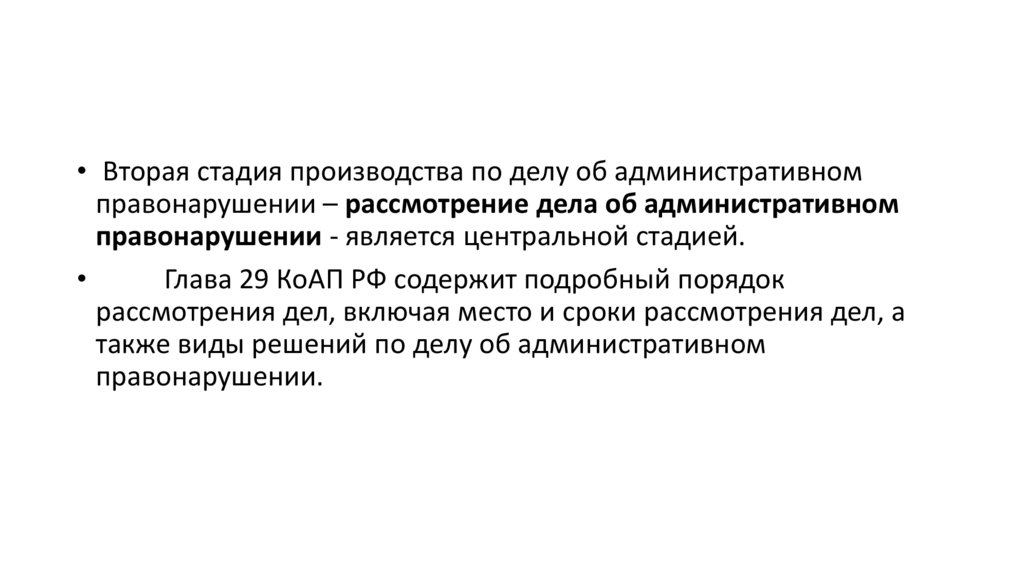 • Вторая стадия производства по делу об административномправонарушении – рассмотрение дела об административном
