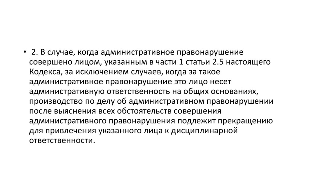 • 2. В случае, когда административное правонарушениесовершено лицом, указанным в части 1 статьи 2.5 настоящего