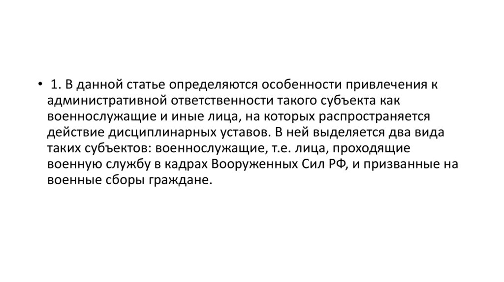 • 1. В данной статье определяются особенности привлечения кадминистративной ответственности такого субъекта как