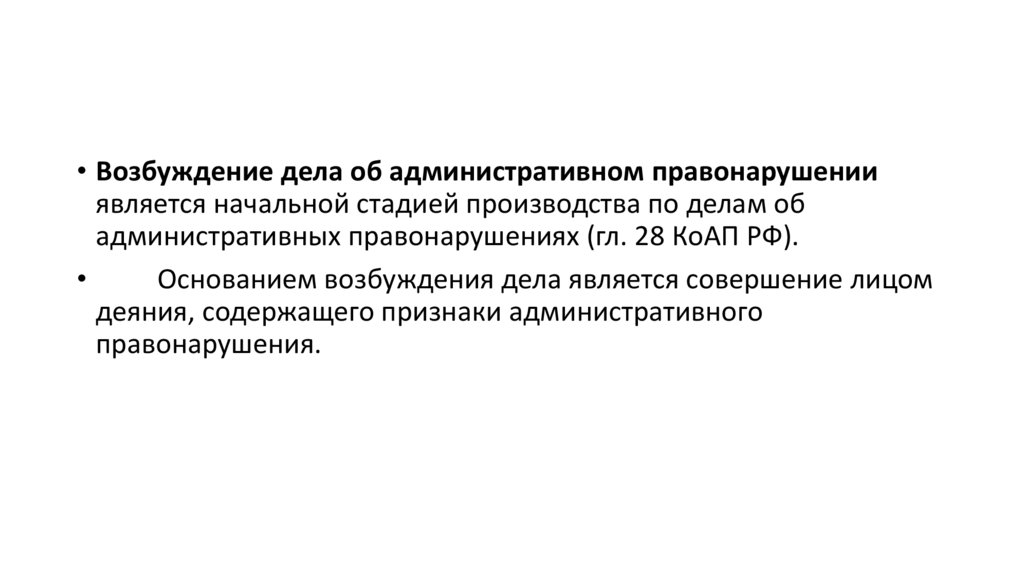 • Возбуждение дела об административном правонарушенииявляется начальной стадией производства по делам об
