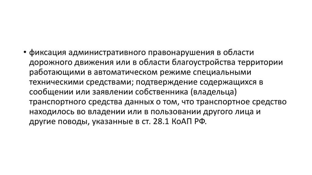 • фиксация административного правонарушения в областидорожного движения или в области благоустройства территории