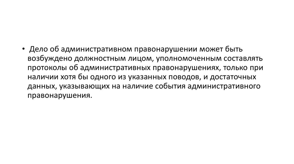 • Дело об административном правонарушении может бытьвозбуждено должностным лицом, уполномоченным составлять