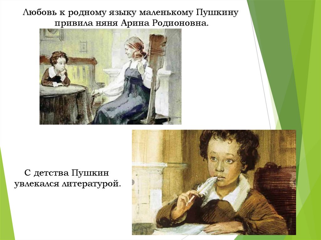 Любовь к родному языку маленькому Пушкинупривила няня Арина Родионовна.