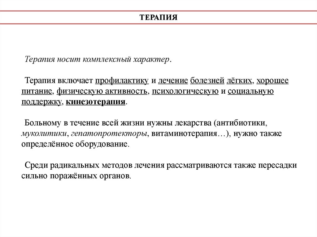 Терапия включает профилактику и лечение болезней лёгких, хорошее