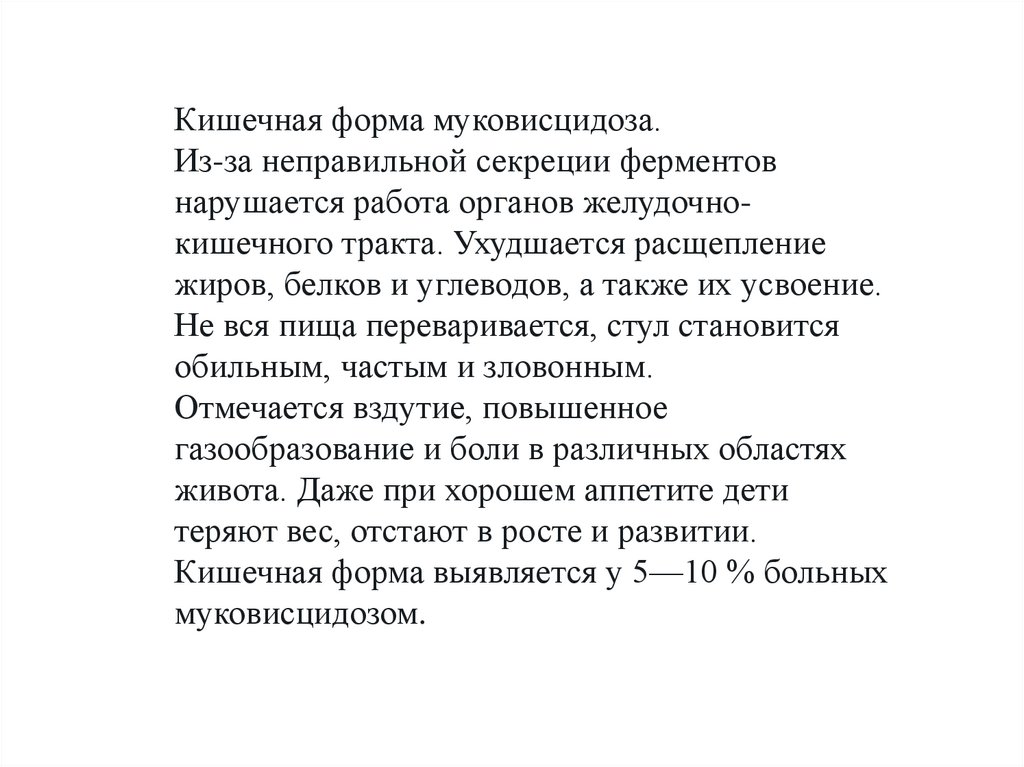 Кишечная форма муковисцидоза.Из-за неправильной секреции ферментов