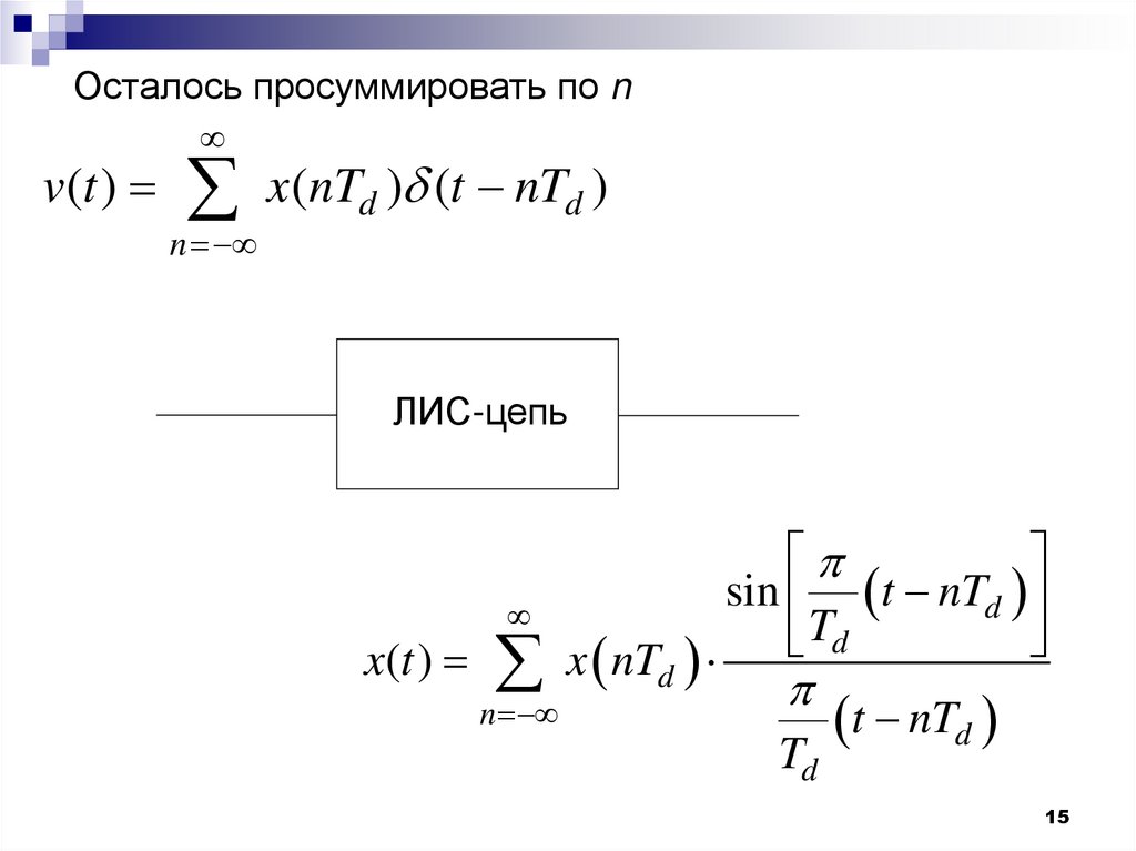 Осталось просуммировать по nv(t ) x(nTd ) (t nTd )