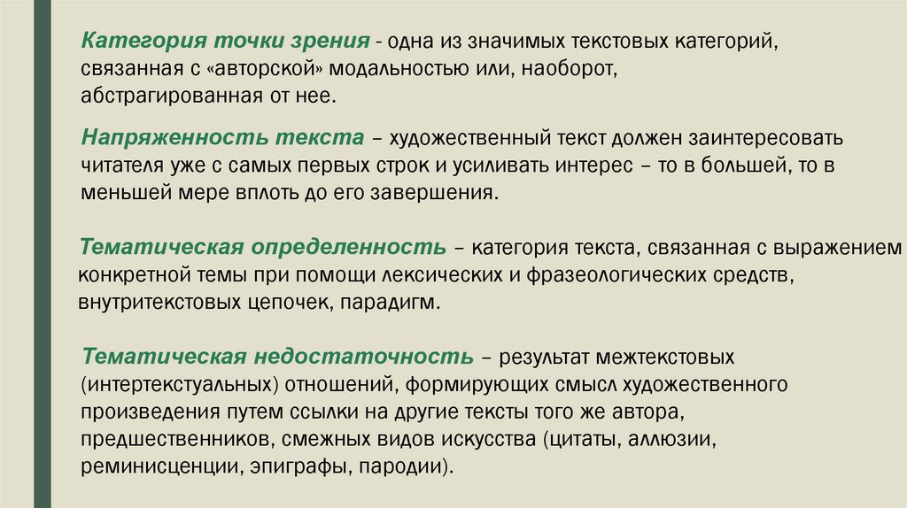 Тематическая определенность – категория текста, связанная с выражением