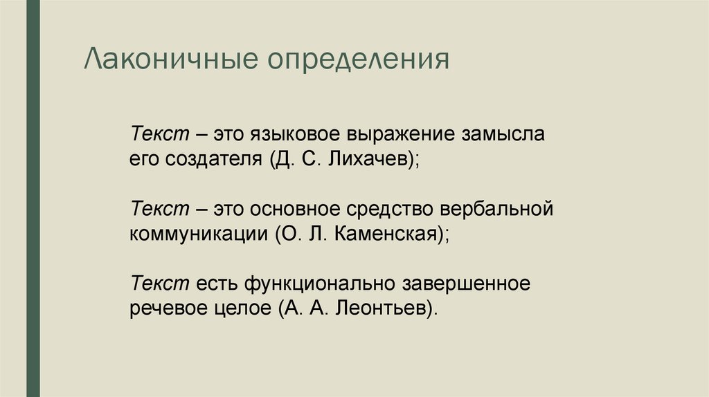 Лаконичные определенияТекст – это языковое выражение замысла