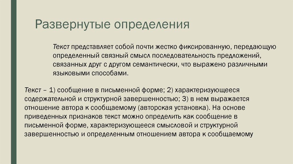 Развернутые определенияТекст представляет собой почти жестко фиксированную, передающую