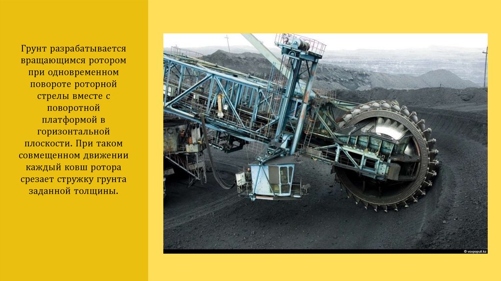 Роторные экскаваторы - ковши закреплены на жестком роторе. Отвал грунта может производиться