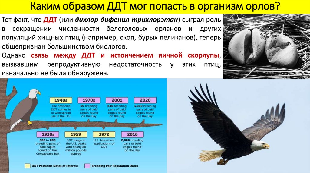 Каким образом ДДТ мог попасть в организм орлов?Тот факт, что ДДТ (или дихлор-дифенил-трихлорэтан) сыграл роль