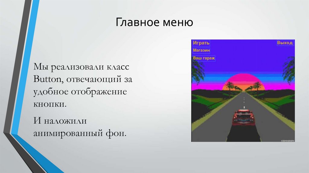 Главное менюМы реализовали класс