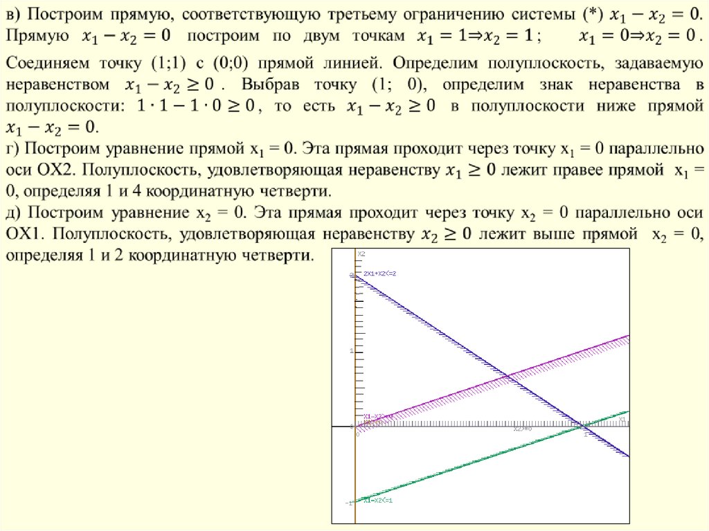 Областью решений задачи линейного программированияявляется пересечение всех решений ограничения (*).