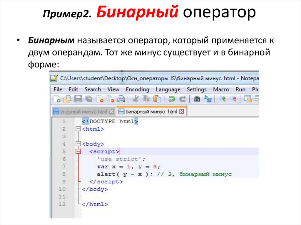 Пример2. Бинарный оператор• Бинарным называется оператор, который применяется к