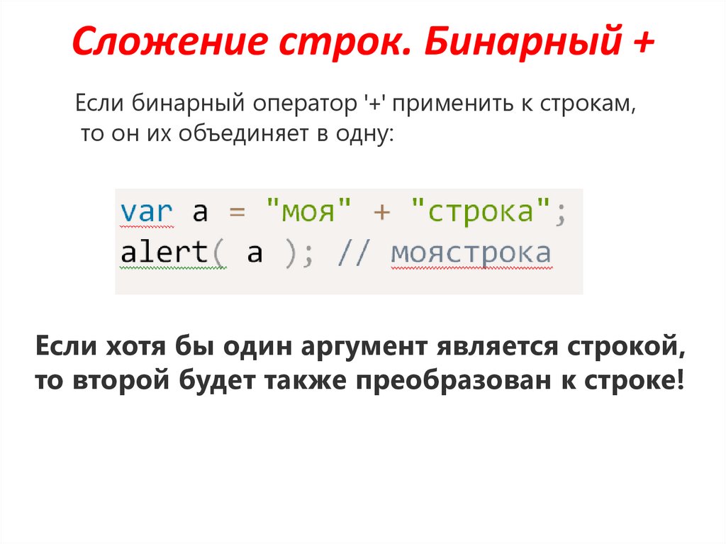 Сложение строк. Бинарный +Если бинарный оператор '+' применить к строкам,