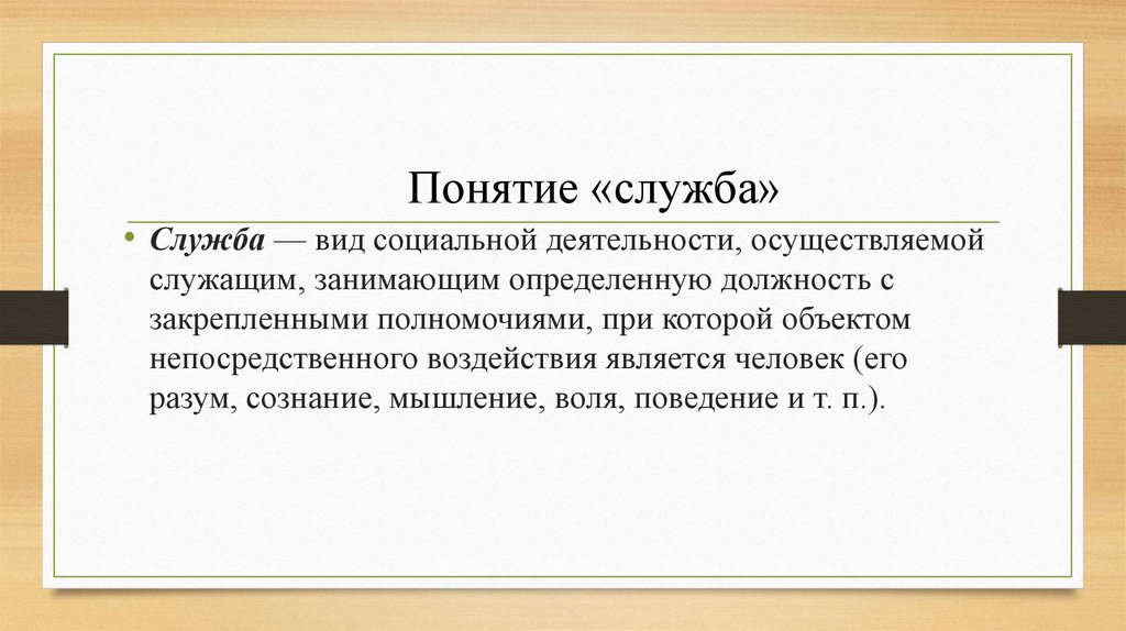 Понятие «служба»• Служба — вид социальной деятельности, осуществляемой