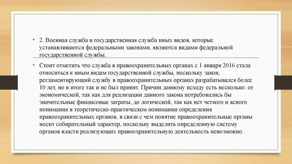 • 2. Военная служба и государственная служба иных видов, которыеустанавливаются федеральными законами, являются видами федеральной
