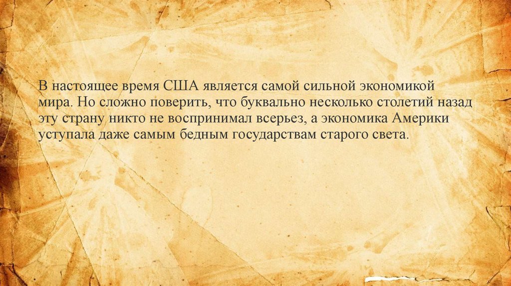 В настоящее время США является самой сильной экономикоймира. Но сложно поверить, что буквально несколько столетий назад
