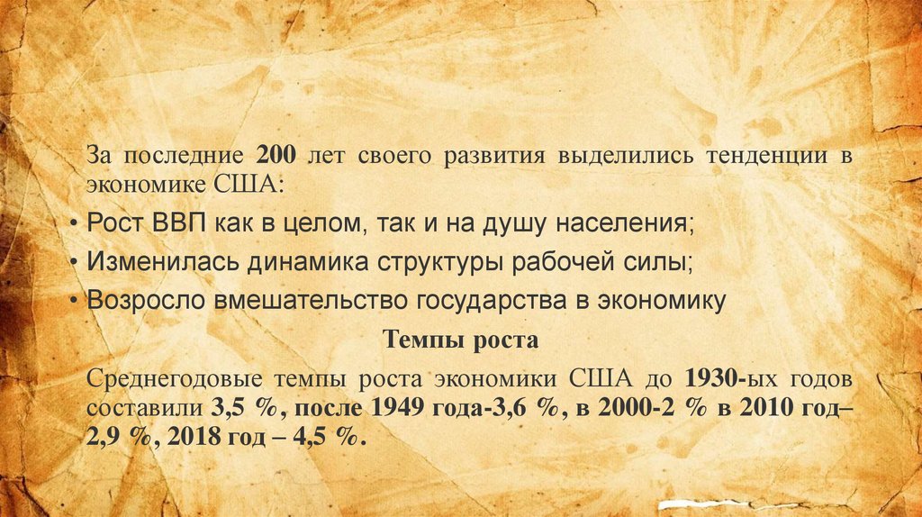 За последние 200 лет своего развития выделились тенденции вэкономике США: