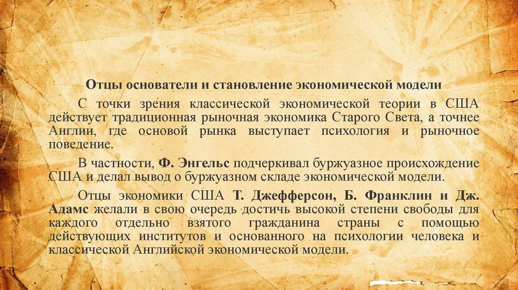 Отцы основатели и становление экономической моделиС точки зрения классической экономической теории в США