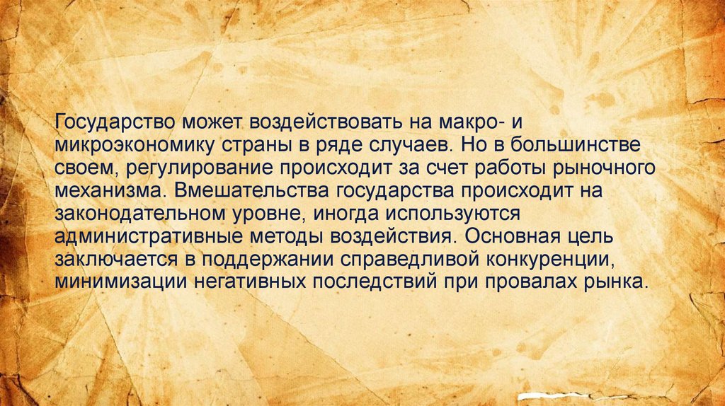Государство может воздействовать на макро- имикроэкономику страны в ряде случаев. Но в большинстве