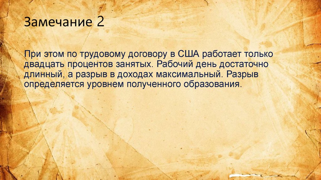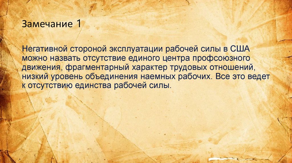 Замечание 1Негативной стороной эксплуатации рабочей силы в США